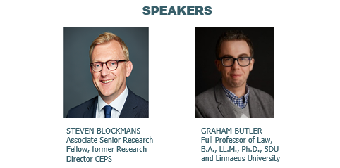 | 17:00 – 17:45 | The Changing World Order and Internal EU Law – by Graham Butler, Full Professor of Law, (B.A., LL.M., Ph.D.), Department of Law, University of Southern Denmark, and Full Professor of Law at Linnaeus University, Sweden |
